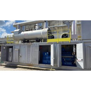 Complete plant including Engine, Alternator, 400V three-phase alternator, Exhaust gas heat exchanger, Radiator, Gas ramp, Control panel DST4602/P Evolution, Plate heat exchanger, Exhaust muffler, 400V/15000V Transformer, Steam Boiler, Container. . Complete accompanying documentation, service documentation, PID diagram, dimensional drawings and Access to the higher-level control system from CTM „Compagnia Tecnica Motori“. According to CTM the DST4602 board and the PLC are not password-protected
