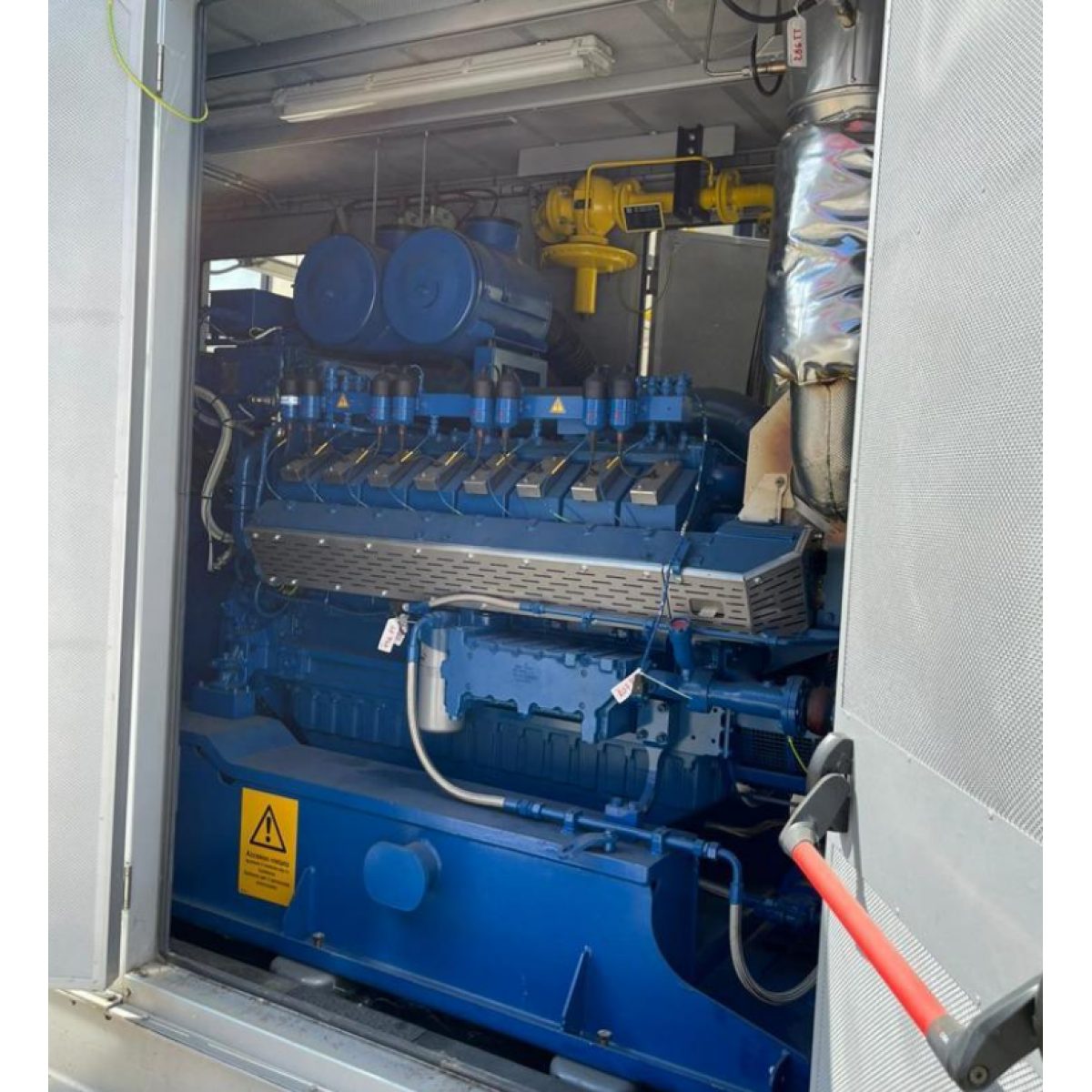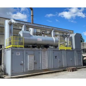 Complete plant including Engine, Alternator, 400V three-phase alternator, Exhaust gas heat exchanger, Radiator, Gas ramp, Control panel DST4602/P Evolution, Plate heat exchanger, Exhaust muffler, 400V/15000V Transformer, Steam Boiler, Container. . Complete accompanying documentation, service documentation, PID diagram, dimensional drawings and Access to the higher-level control system from CTM „Compagnia Tecnica Motori“. According to CTM the DST4602 board and the PLC are not password-protected